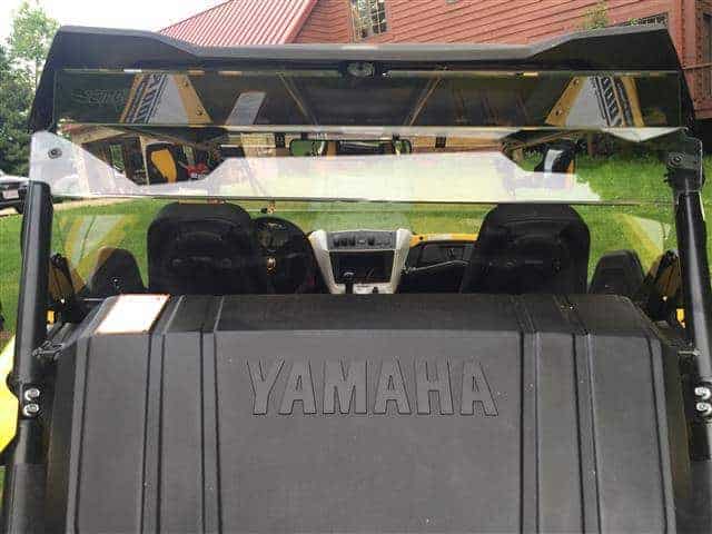 Yamaha YXZ 1000R Rear Windshield, Protects Driver And Passenger. Made From 3/16” Thick Hard Coated Poly Carbonate. Attaches Rubber Fast Straps, Fast Removal.