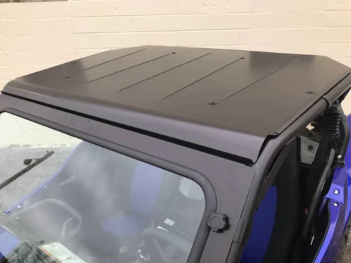 Yamaha YXZ 1000R Roof, Protects Driver And Passenger. Made From USA .100″ Thick Aluminum. Front And Rear Gutters Divert Water To The Sides. Powder Coated Black